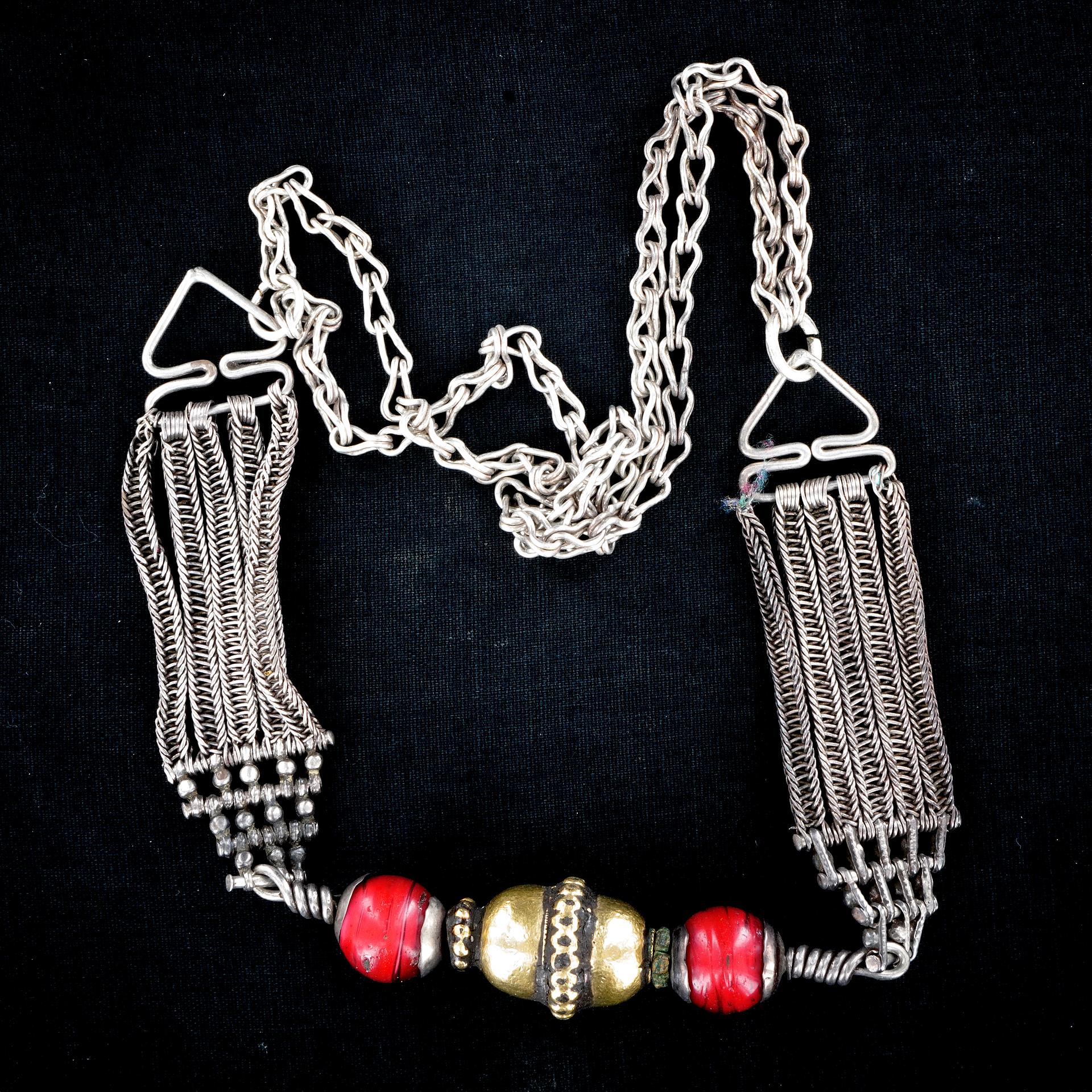 Yemeny necklace with 22 silver beads and small red glass beads. The necklace could be a islamic prayer rosary even if th number of beads does not correspond.